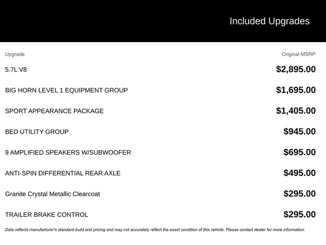 - Engine liters: 5.7L